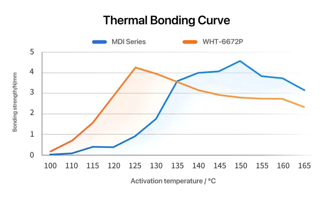 This product also has the advantage of high bonding strength and a low activation temperature, offering more choices of base material. Additionally, the low activation temperature also provides protection for the bonded substrates, expanding the range of substrate options available.